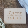 Koivuvanerista valmistettu kortti on tavallista korttia pitkäikäisempi ja säilyy kauniina muistona erityisestä päivästä. Kortti sopii erinomaisesti esimerkiksi äitienpäivään, syntymäpäivään tai muuhun hetkeen, jolloin haluat ilahduttaa äitiä persoonallisella tavalla.